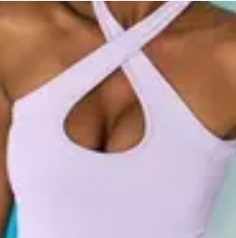 Ribbed fabric hugging your curves. Halter design with keyhole in the front! Super stretchy and comfortable! Moisture wicking.